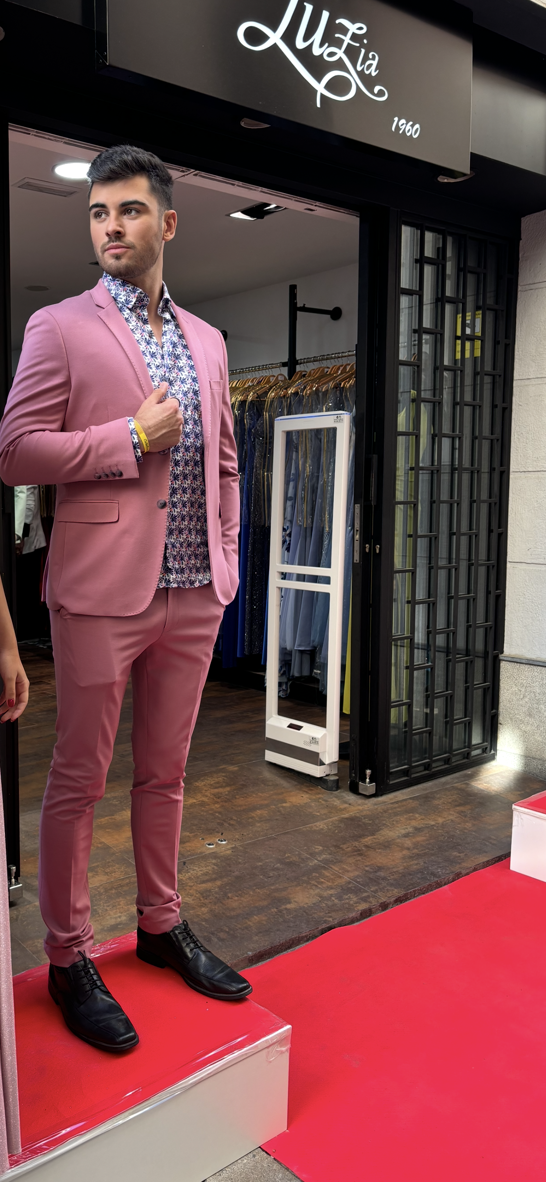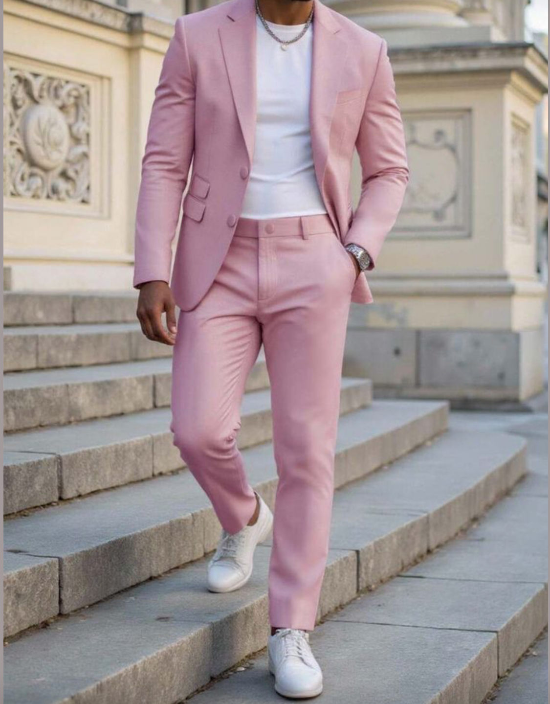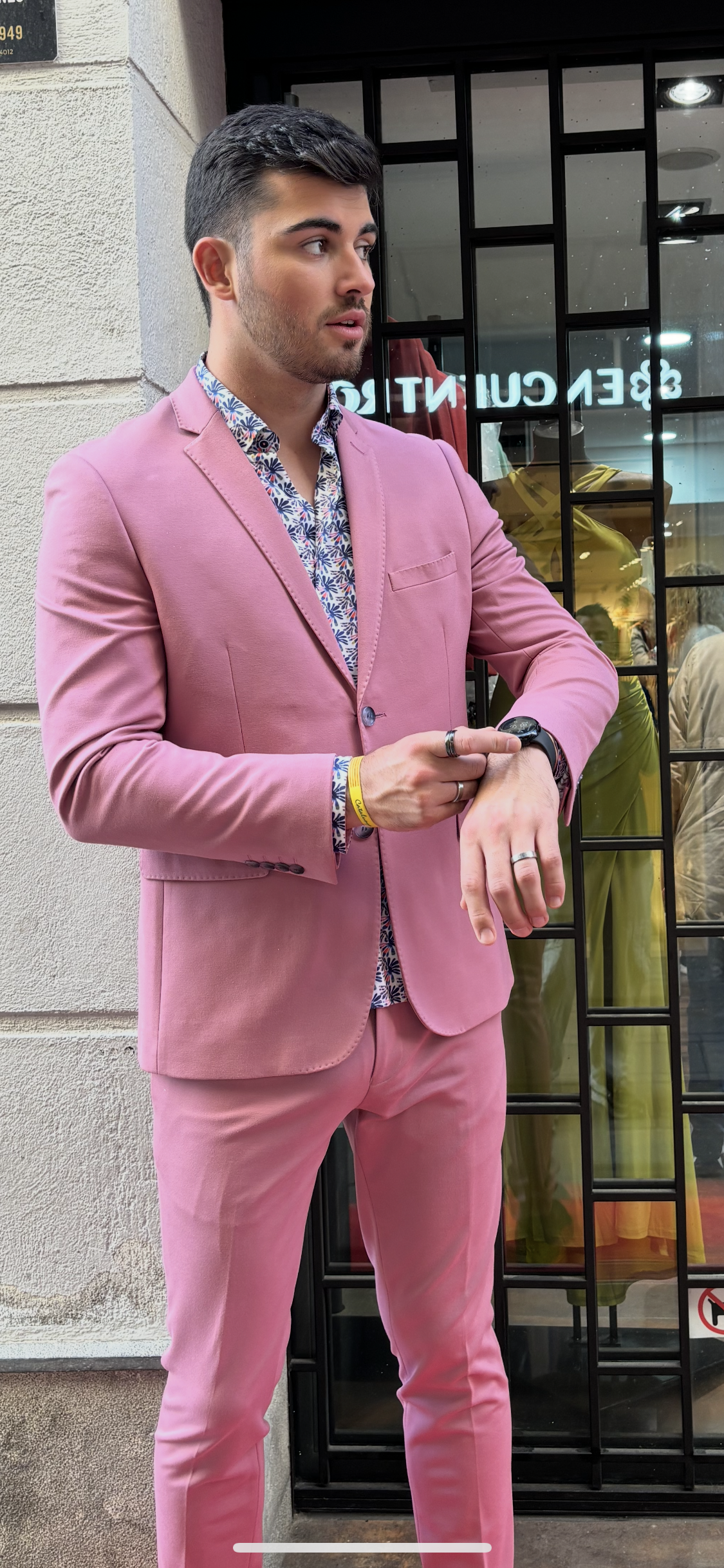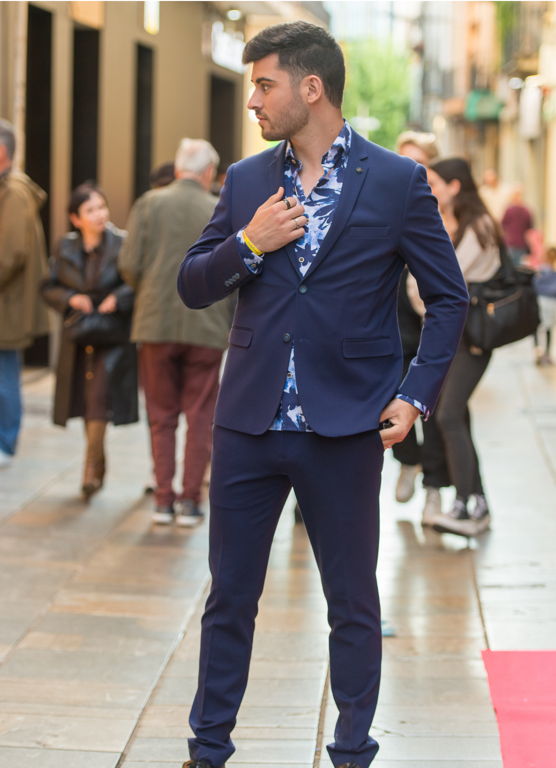 Traje de dos piezas. Americana entallada, muy cómoda, dada su elasticidad se adapta muy bien a cualquier tipo de constitución. Pantalón pitillo con cintura ajustable.