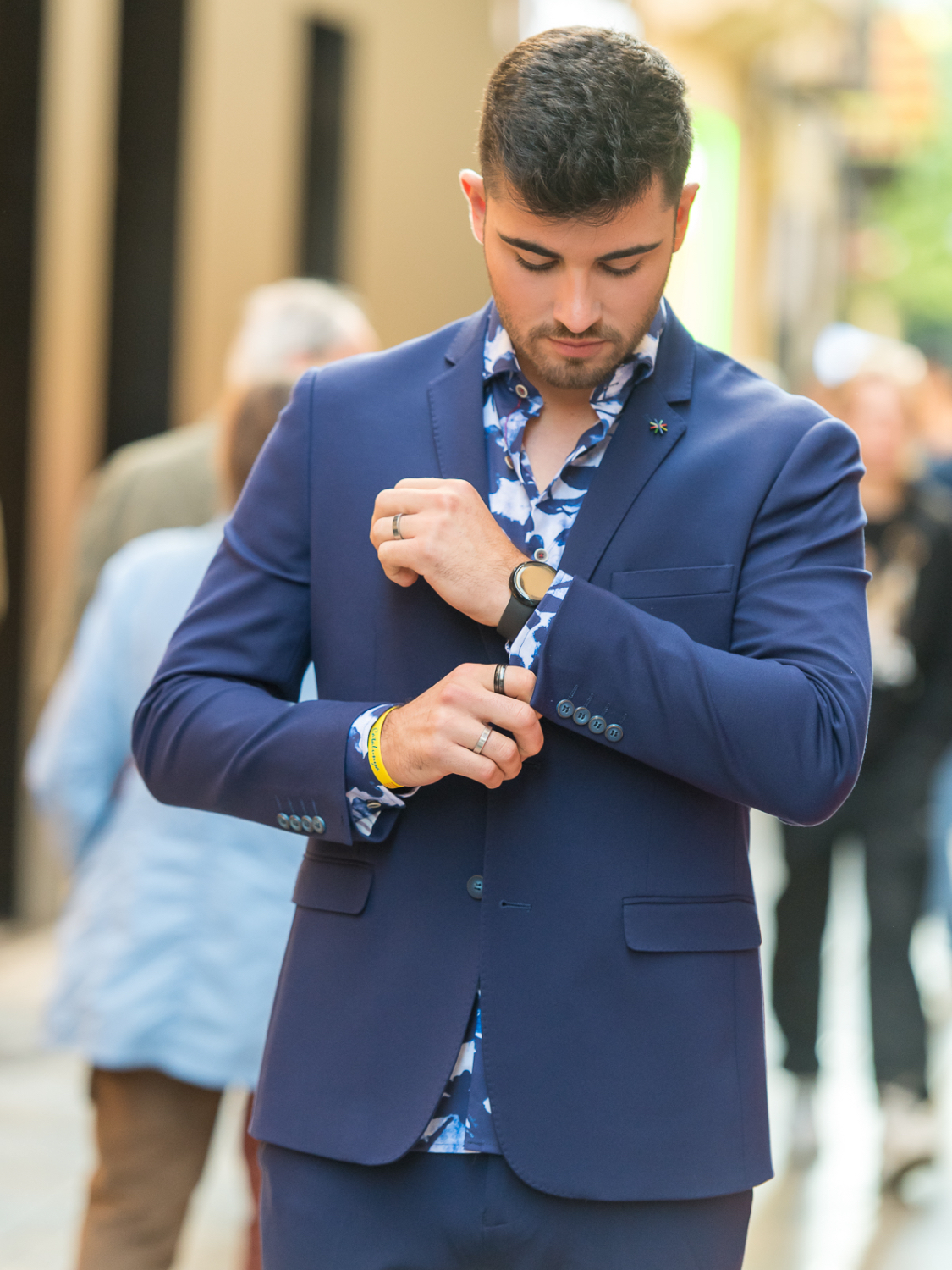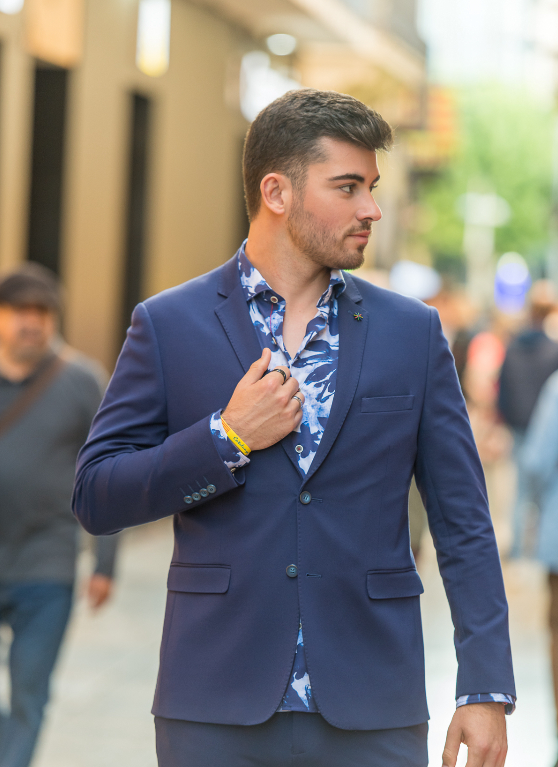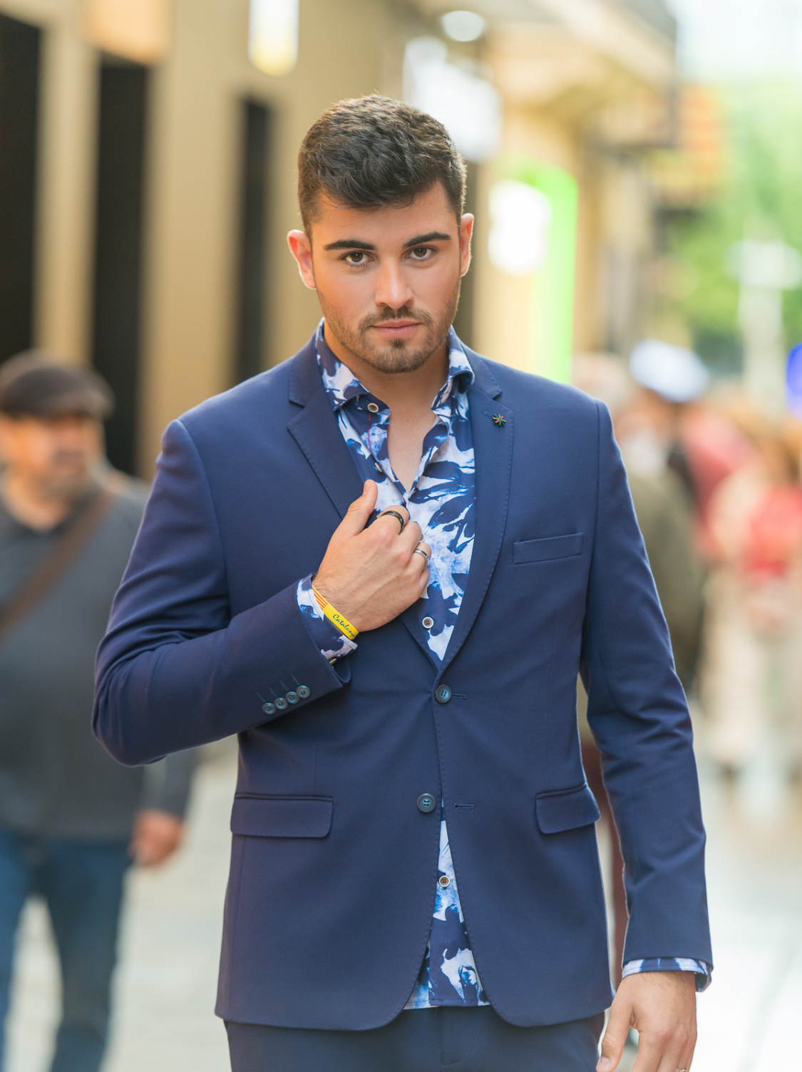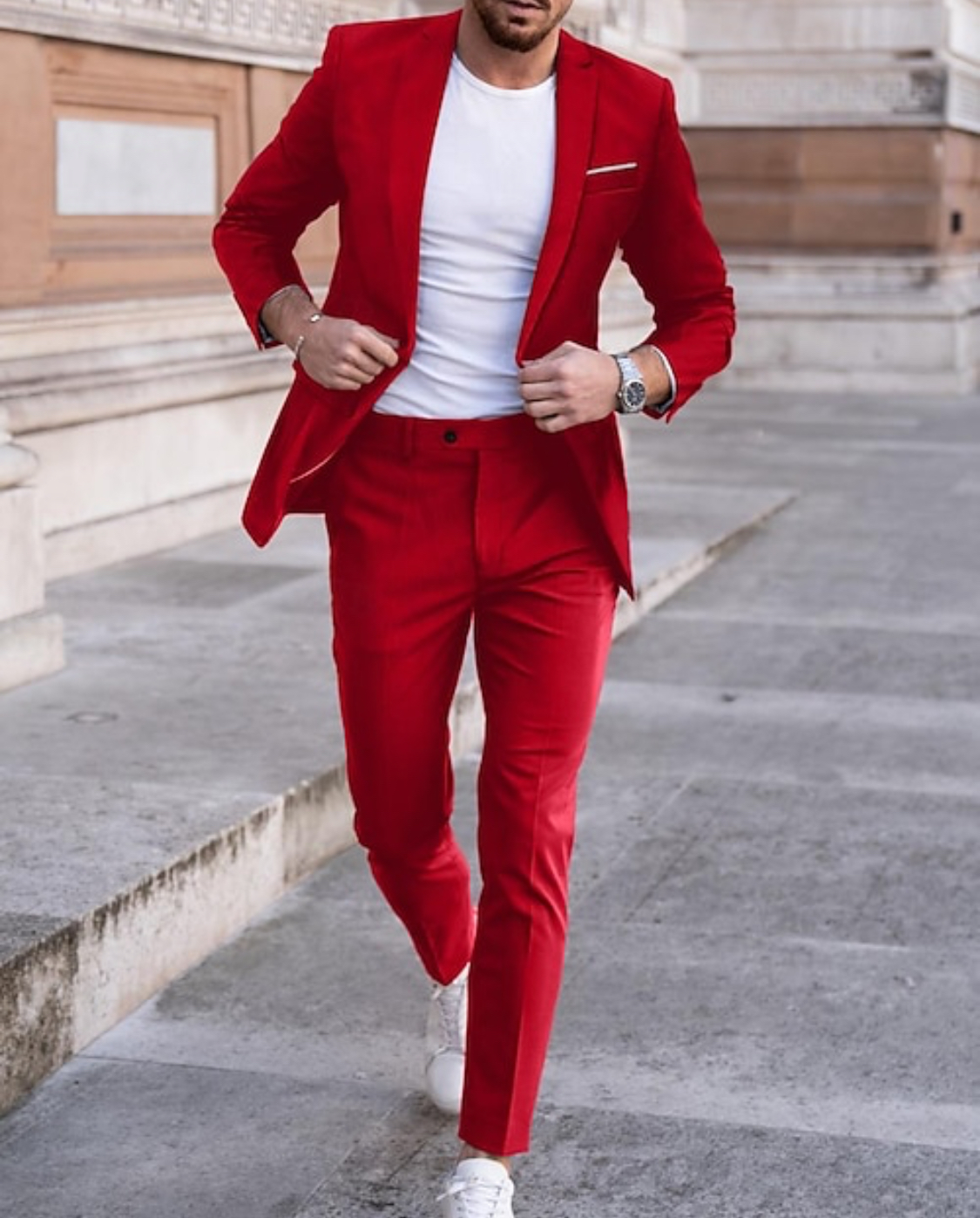 Traje de dos piezas. Americana entallada, muy cómoda, dada su elasticidad se adapta muy bien a cualquier tipo de constitución. Pantalón pitillo con cintura ajustable.